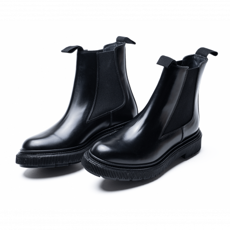 Polished leather chelsea boots, injected rubber sole