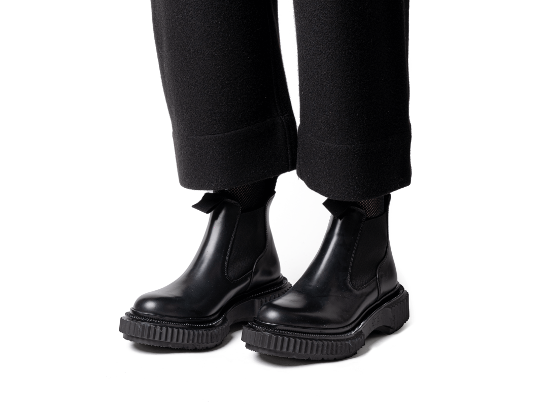 Polished leather chelsea boots, new injected rubber sole